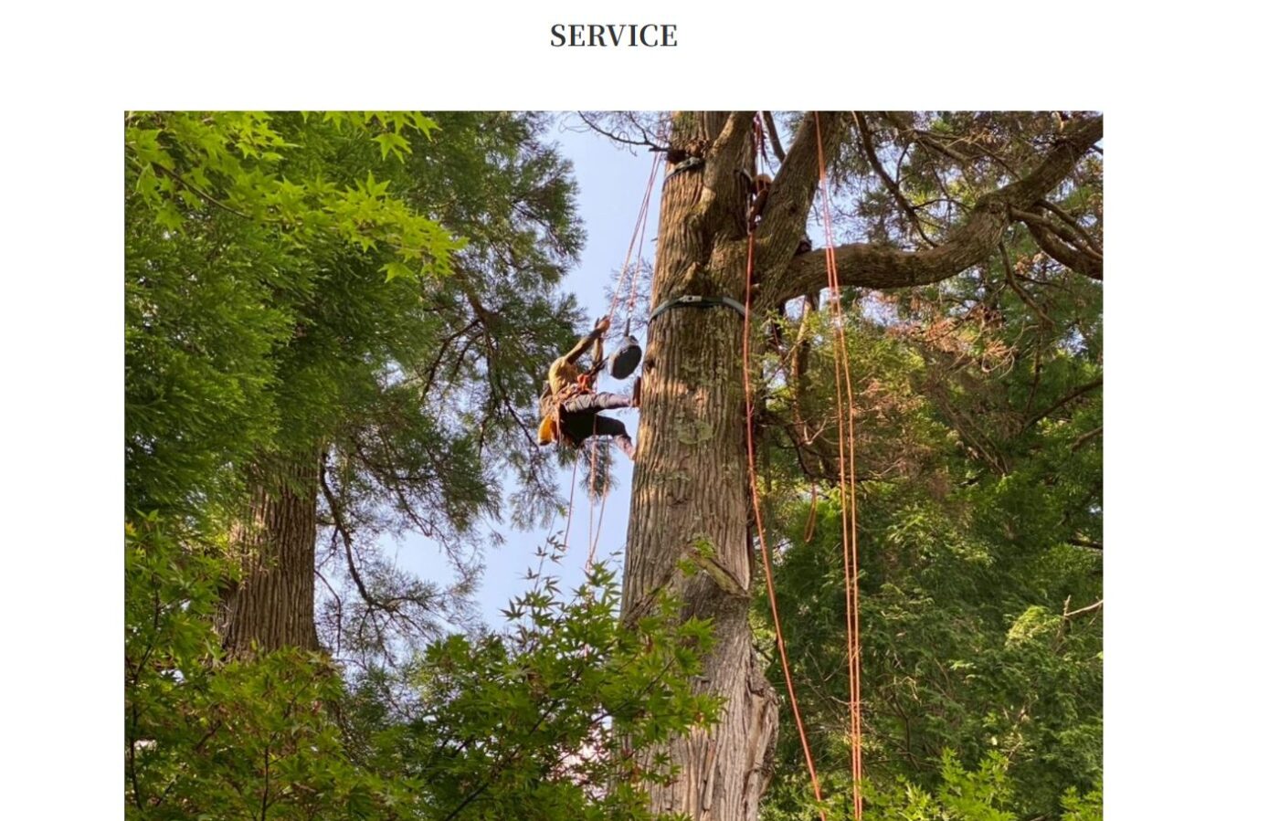 ロープ一本で何十メートルもの高さの大木に登り剪定などを行う姿は長年の経験のなせる技です。